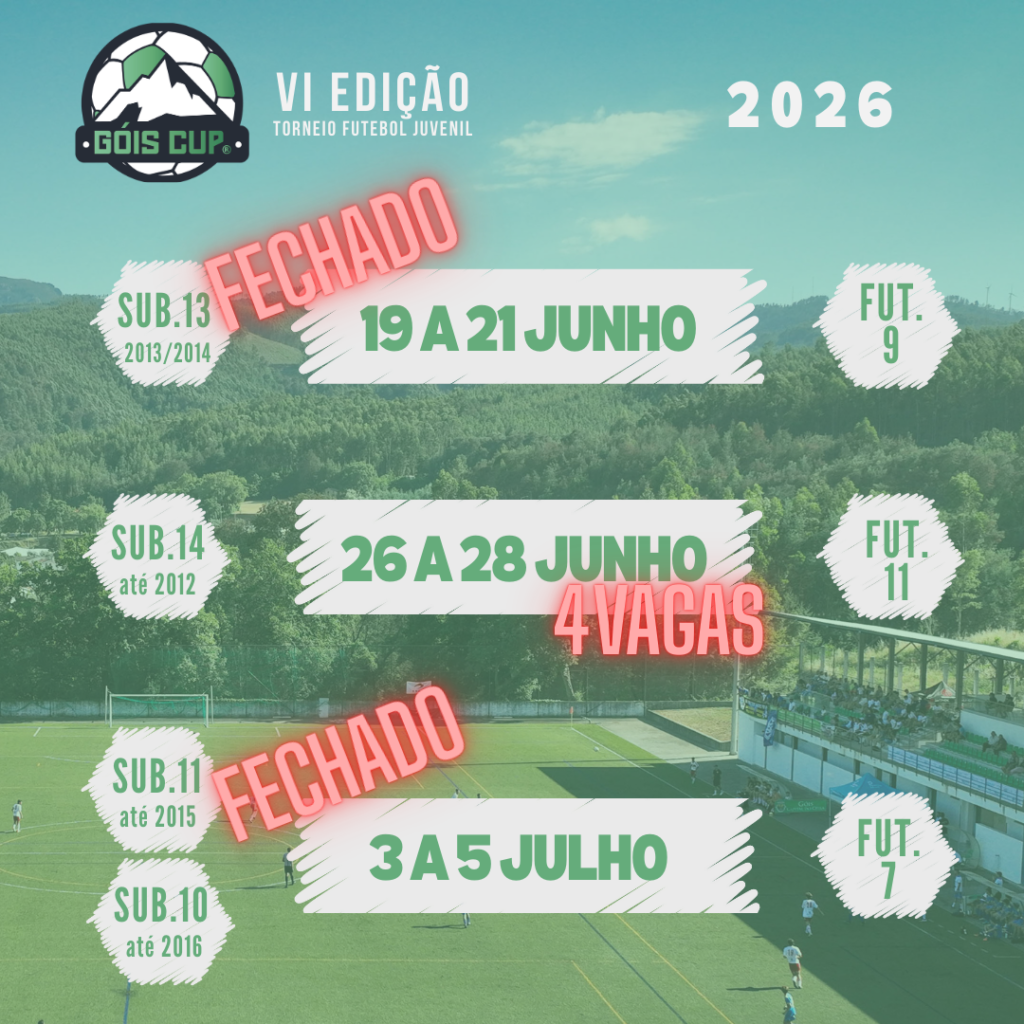 O Góis Cup regressa em 2026 para mais uma edição dedicada ao desporto, à formação e aos valores que tornam o futebol verdadeiramente especial. Depois de edições consecutivas marcadas pelo crescimento, internacionalização e participação de mais de 600 jovens atletas por ano, o torneio começa a afirmar-se como um dos grandes eventos juvenis de futebol em Portugal.